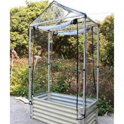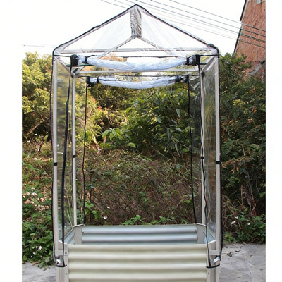 another PVC cover, which can be rolled up, designed to keep your plants away from being attacked by rain or heavy wind.